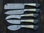 Magnificent Custom Made Damascus Blade Kitchen/Chef Knife Set 5 pieces, Unique High Grade Hand Forged Kitchen Knives Set